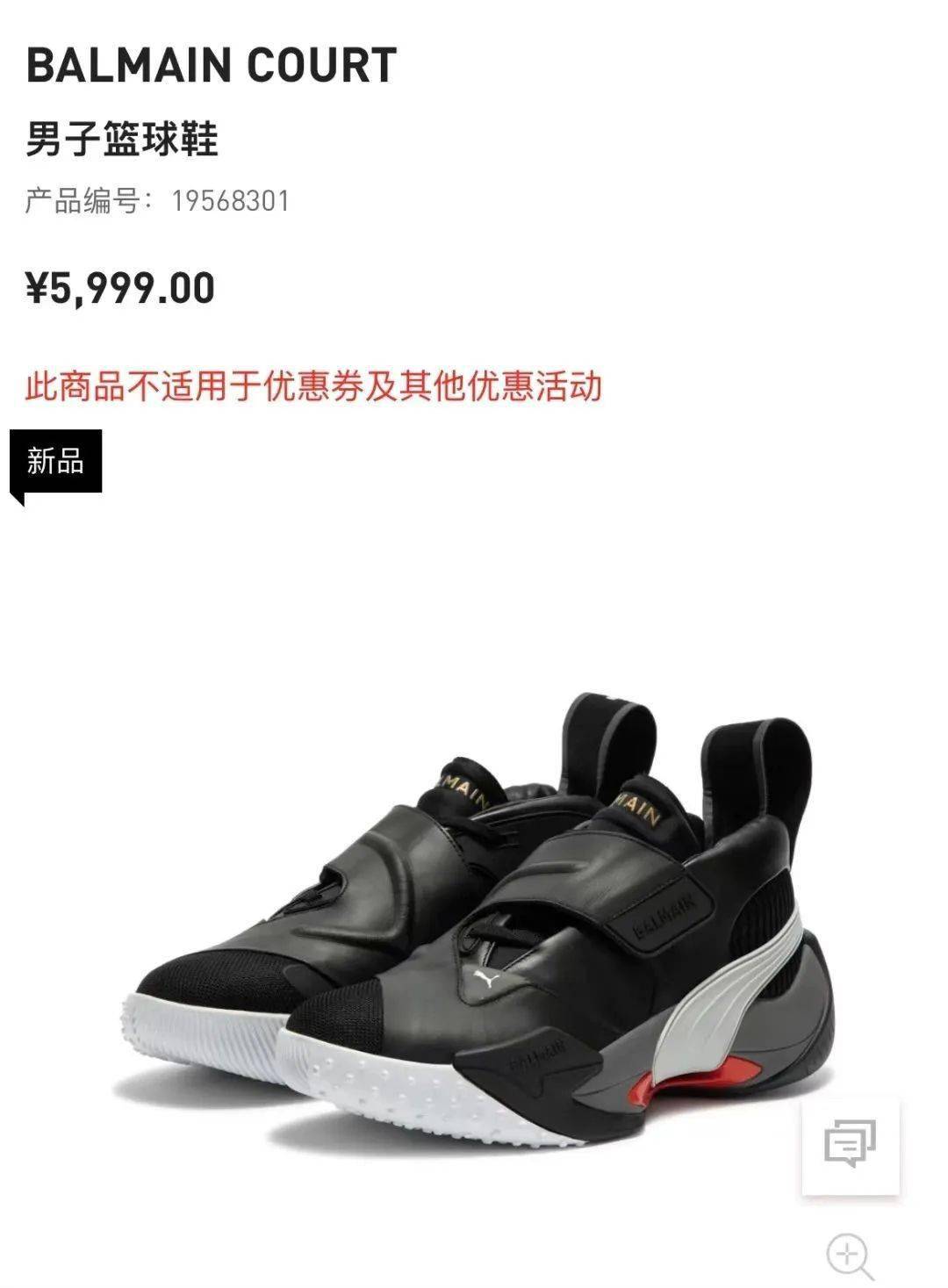 (图片来源:PUMA官网) 这双联名鞋款选取了黑色作为主颜色,白色和灰色相辅,再参与红色点睛,鞋身和鞋舌处均有BALMAIN的logo,金色的部分能够捕获到BALMAIN的几分灵魂。