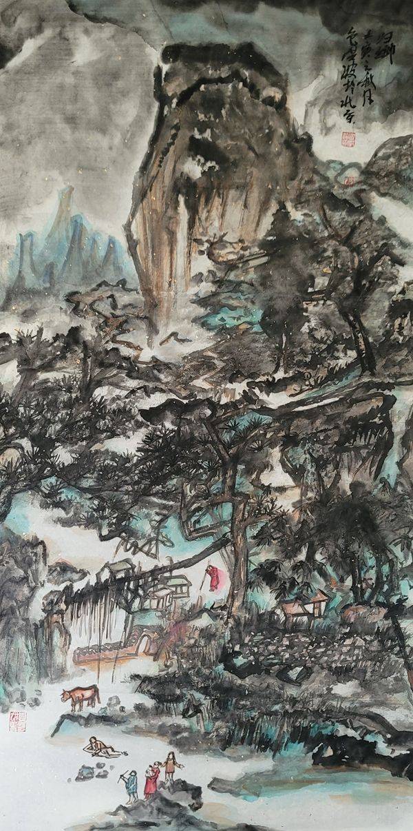 古亭寒石幽人往,奇树老屋斜云飞 ——赏评包洪波山水画 陈胜临 小引 鸟倦飞而独还,树浓生而长立。时在初夏,为人写序,所序何人?当今画坛彦俊,包君洪波也。闻其名,是山水中人;见其画,亦山水中人也。以其画释其名,是谓绝妙;以其名助其画,是谓天成。可谓:“画因人显,人因画名。”
