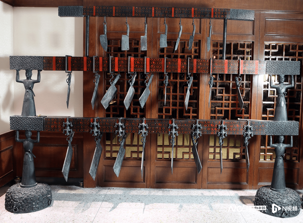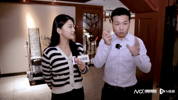 阳江市十八子声响博物馆解说员姜宜胜(右)向南都、N视频记者引见展品 扫码看回放 结缘与希冀 300多万张黑胶、300多万张唱片光碟 让世界经过声响博物馆认识阳江 阳江十八子声响博物馆成立于2010年5月,总面积约10000平方米。这里目前具有300多万张黑胶、300多万张唱片光碟,还保存有世界上已知的独一套完好 “HP天碟榜”黑胶唱片,馆内现馆藏世界知名声响品牌器材量更是破2016年坚持的世界纪录。目前馆内设有声响历史馆、音乐馆、体验馆、综合馆四大功用馆。 “为什么会把刀放在声响博物馆”,“音乐与刀有什么联络”?走进声响历史博物馆,一排排刀形编钟映入视线,引人入胜。阳江十八子声响博物馆解说员姜宜胜引见,《三字经》记载“匏土革,木石金。丝与竹,乃八音”。音乐源于人类本体的最初生命运动,其最早源于人类击打各类木石器,它的产生与工具密不可分。在声响博物馆的初始位置放置刀形编钟讨论音乐来源,为“音乐与刀”的主题博物馆作序,这样标新立异的开端也让参观者对整个声响博物馆产生浓烈的猎奇心。