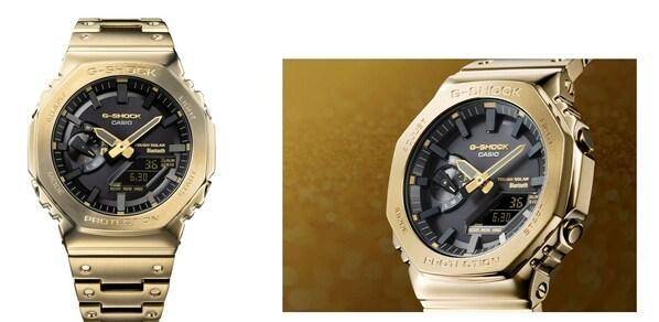 GM-B2100GD-9A 随着2019年发布2100系列的第一款手表 -- GA-2100数字-模仿组合型号,卡西欧呈现了对第一款 G-SHOCK 的当代诠释。该系列手表以其共同的八角形表圈和轻薄简单的设计而出名,在世界各地都很受欢送。 今天宣布的全新 GM-B2100GD-9A 是一款闪闪发亮的黄金色防震手表,为 GM-B2100型号新增了一个颜色选项。该不只将黄金 IP 用于表圈和表带,以至还用于设计的细节方面,如侧面按钮和螺丝。单独为表圈上名义采用拉丝以及为其轻轻倾斜的侧面采用镜面抛光提升了闪闪发光的金属的纹理感。 相似于黄金的颜色中的强调色用于凸显指数标记和表针等组件,与黑色表盘相比十分突出,给人一种别致的印象。它的设计十分灵活,能够搭配各种服装,无论是休闲装还是正装,黄金色分发出奇妙的共同个性。 这款新手表也很适用,搭载 Tough Solar 充电系统,无需定期改换电池。该手表还提供 Mobile Link 功用*,以便经过 Bluetooth与智能手机配对时能够精确地显现时间,轻松地设置闹钟、运用世界时间等功用。 *需求下载特地的 CASIO WATCHES 应用。 Bluetooth字标和图标是由 Bluetooth SIG, Inc.一切的注册商标,卡西欧计算机株式会社取得答应前方可运用。