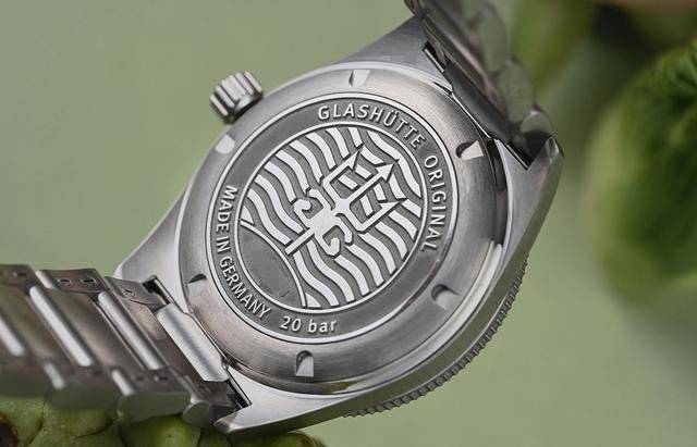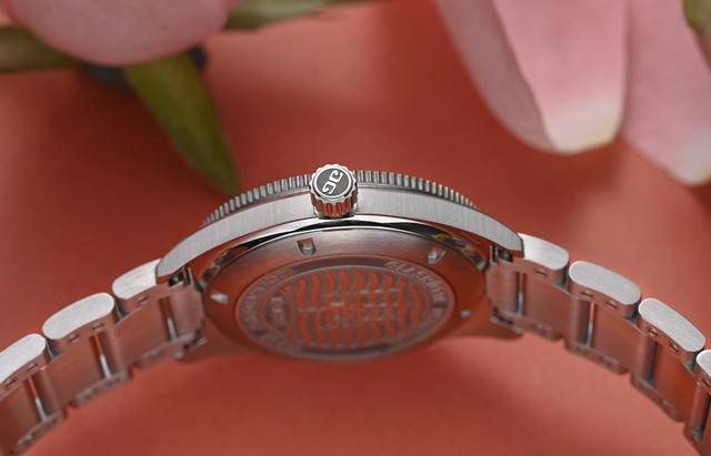 翻到腕表背面,底盖上刻有代表海神的三叉戟图案以及意味品牌的双G标记,除此之外,制表匠还在表背上刻了20条波浪纹,以呼应腕表20巴(即200米)防水性能。假如你有兴味,无妨数一数!腕表搭载39-11自动上链机芯,动力贮藏40小时。