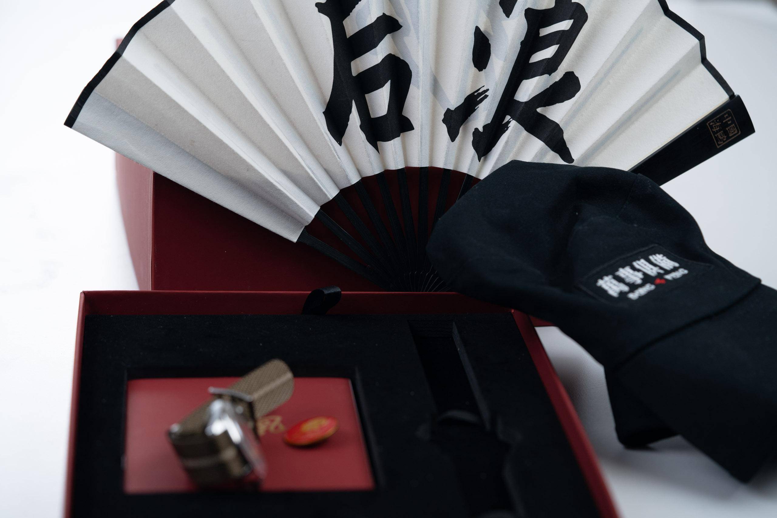 这款表在官方旗舰店的价钱是2580,它是一个礼盒套装,外观很像一个带有烫金字体的大红包,看着很喜庆,十分合恰当作礼品在节日的送人。盒子里面分两层,第一层放的就是手表和阐明手册兼保卡,第二层呢是礼品,一顶渔夫帽,一把折扇以及交流用的皮带。不论是帽子还是折扇都很有特征,特别是这扇子,我这写的是后浪,但我看还有别的标语,可能跟盲盒似的是随机的,挺有意义的。