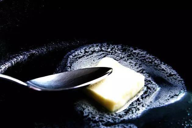 ⑥将无盐黄油放入平底锅中,中小火将平底锅烧热,待黄油完整消融,将吐司片放入,煎至两面焦黄取出
