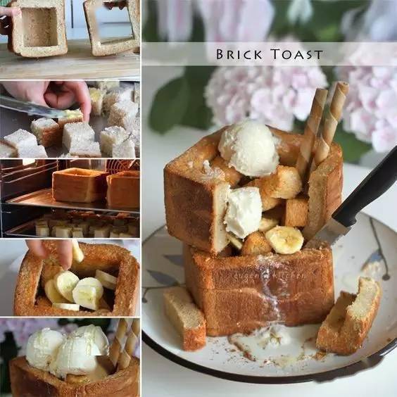用吐司做各种三明治——好比开放式三明治、沼三明治、吐司卷等等,在盛行了这么多年后终于能够入土为安,下一个时期盛行的吐司吃法,炫酷又正派、卖相好滋味更好。把戏吐司们终于从早餐小点心升级成了一道拿得出手的甜品!最重要的是,快手水平不相上下! 用吐司冒充蛋糕也毫不逊色 奶油奶酪吐司面包