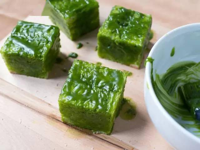 ②将无盐黄油、蜂蜜、抹茶粉混合打匀,过筛一次,滤去抹茶粉的结块,将制造好的抹茶混合物刷于面包块的名义