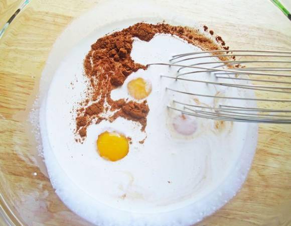②鸡蛋、淡奶油、香草精、1g肉桂粉混合打散,备用