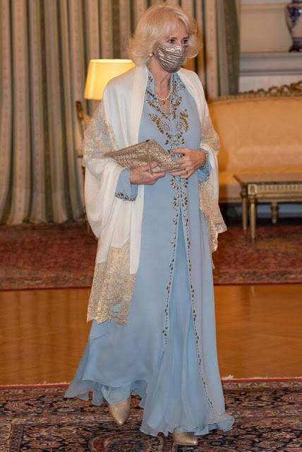 姿势不时都算不上太文雅的卡米拉,很是随意的坐姿固然是超接地气的,但全然没有一位公爵夫人该有姿势的她,这一次的外型是远不如前一天的那套水蓝色纱裙来的冷傲。 装点着金色元素的蓝色外套是超级无敌清新的配色,样式也是比较利落的裙子将卡米拉的身体烘托得又高又瘦。垂直竖立着的衣领盘绕在卡米拉的脖子周围,很显曲线流利且纤细的她,脖子上佩戴着的那条珍珠项链也太过于高雅了,难怪各国王室的女性成员们,关于珍珠首饰都是情有独钟着的。