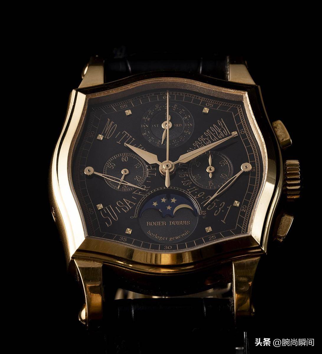 Roger 早前曾与 Jean-Marc Wiederrect 协作开发带有逆跳显现的海瑞温斯顿万年历。 这款腕表在 1989 年的巴塞尔钟表珠宝展上成为全球首个具有双逆跳指示的万年历腕表。请参阅 Revolution 关于这段历史的精彩小哥,Jean-Marc 讲述了这种复杂功用是如何产生的。 当他们是一个名为 PME Developments Horlogers 的普通合伙协会的成员时,他最初将这个想法提交给了 Roger。 这是一次非正式协作,旨在处置共享完成的开发、消费和商业化问题,旨在为知名手表品牌效劳。 固然 Jean-Marc 参与了开发,但复杂功用的制造则由 Roger 担任。 我们了解到,为开发海瑞温斯顿双逆跳万年历所做的工作已用于 Symphatie。 表盘的外形与表壳相同。在这款评测手表中,黑色带有金色印刷指示。时标是 18k 玫瑰金的四面金字塔贴花。沿复杂外形的铁路轨道位于周边。闰年和月相显现分别位于 12 点钟和 6 点钟位置。计时指示器采用双复合样式,2023计时指针为长而世故的针形指针,3 点钟位置的小表盘上设有分钟计时盘。连续秒针小表盘位于 9 点钟位置。 时针和分针为大型长矛形,2023折痕向察看者展示两个平面。一切指针均采用粒面高抛光处置,可吸收光线,使表盘黑漆帆布上的指示器愈加明晰可见。表盘上的任何元素都没有流明。