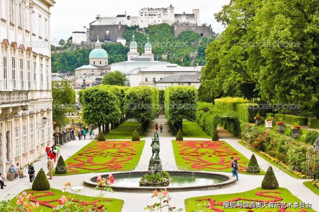 音乐节演出场所 < 米拉贝尔花园 > 著名的米拉贝尔花园由大教主约翰.冯.图恩于17世纪建造,是奥天时最美丽的公园和露天舞台之一。