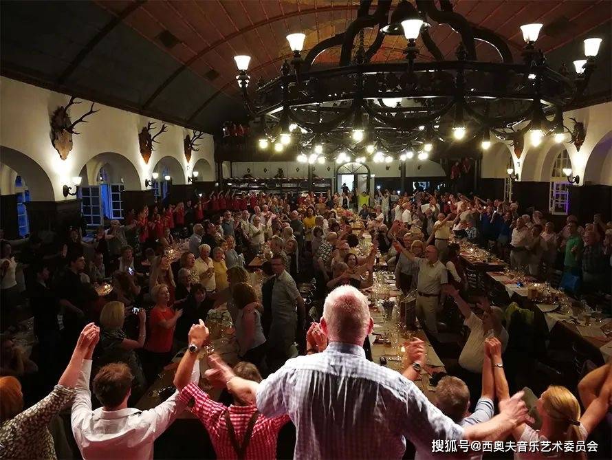 音乐节闭幕式晚宴 在萨尔茨堡要塞下的酒窖餐厅参与音乐节闭幕式晚宴。主席为一切代表团成员颁发艺术节参与证书并赠送小礼物。
