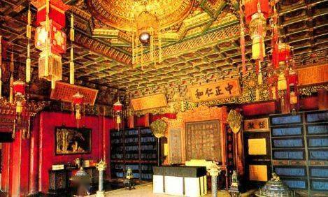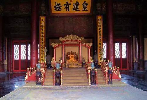 中和殿匾额:允执厥中 时乘六龙以御天,所其无逸 用敷五福而锡极,彰厥有常 ——乾隆题 保和殿对联