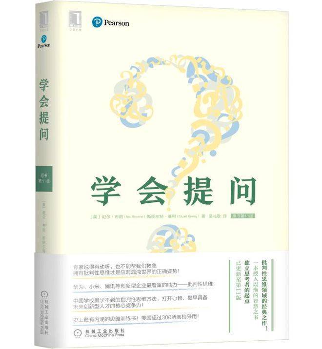 9、《学会提问》(豆瓣评分8.3) 《学会提问》作者是尼尔·布朗和斯图尔特·基利,本书应用批判性思想范畴的最新研讨成果,罗列科学研讨和日常生活中的大量实例,教授人们富有理性、逻辑性和批判性地提出、思索、判别和处置问题的措施。 读完这本书之后,以为这本书主要教导读者学会三点:认识到一些彼此相关的批判性问题;能够在恰当的机遇提出和回答批判性问题;愿意主动运用批判性问题。
