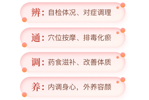 从通经络、调气血、护脏腑、妇科颐养、女性抗衰五大模块入手,帮你解 决:生活中很多常见肌肤和健康问题。