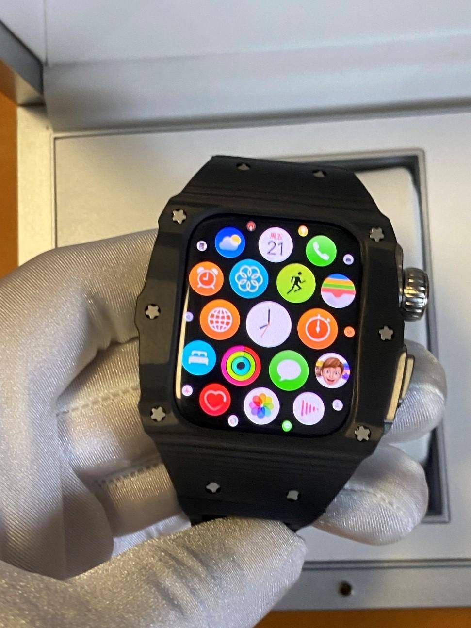 另一边是多年专注高端消费电子的改装及定制品牌——爱定族,推出了Apple Watch S7 手表改装套件。在保存原版全部功用的同时,这组套件基于著名方程式赛车的创作理念,外观极具理查德米勒的神韵。
