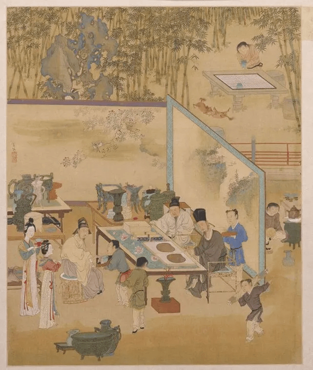 《南都繁会图》卷(部分)明(公元1368年-1644年)佚名绘,纵44厘米,横350厘米,现藏国度博物馆。图卷描画了明代南京商业昌盛的局面,画卷内共绘有1000余位人物和109个商店的招幌牌匾。 二十年后,张瀚记叙了从 朴素品消费中心苏州向外传播的时兴扩散过程: “ 至于民间习俗,大都江南侈于江北,而江南之侈尤莫过于三吴。自昔吴俗习奢华、乐奇特,人情皆观赴焉。吴制服而华,以为非是弗文也;吴制器而美,以为非是弗珍也。” 张瀚不单单是简单地描画苏州衣饰的习尚标位置,他还是认识到追逐时兴的过程曾经成为商品消费的一个组成部分。 上海模仿苏州的样式,但总是慢半拍一样,平民庶民仿效士绅的衣着,也总是略胜一筹。清初散文作家叶梦珠回想明朝后期他的家乡上海的情形:在追逐时兴的愿望面前,士绅与其他人一样摧枯拉朽,他们不时将新的华美的样式传播到社会其他阶级中去, 从而引发了全社会追逐时兴的狂热。 置办高级文玩 进入贵重物品的范畴后,时兴追逐的人群就变得小了。 在这一范畴,要说有谁永不疲惫地追求社会位置,就只需那些能够以大量的金钱置办可贵物品的人了。古董、字画,被大量地带到了处于道德真空地带的金钱世界。这些物品向应邀前来参观或运用的人们展示着珍藏者的独到鉴赏力和不俗的文化品位。 艺术家兼政府官员李日华在日记里,无意中记下了1603年先后十三次古董字画商向他兜售古董字画的事。在李日华的圈子以外的有钱人都没有他那样的对文化物品的鉴赏力,他们会很痛快地为那些 看上去值钱和高档的东西掏腰包——金银做成的东西,好比金质餐具、银质香炉、用金线织成的锦缎。这些物质财富肯定会令普通的平民庶民眼花纷乱,但在那些代表高水平文化品位的士绅眼中,它仅仅是金钱的糜费:有钱人借此谋取社会位置的尝试失败了。 拜有文化的士绅为师。品位鉴赏手册的作者们都生活在江南城镇的浓厚文化氛围之中,多数是文人学者,也有一些商人。他们教读者什么是雅、什么是俗的时分,有钱人能够从这些书中学到:搜集什么?什么时分向人展示?怎样展示?其鉴赏价值何在?如何鉴别其质量的优劣?换句话说就是,怎样使自己的行为举止看上去文雅。