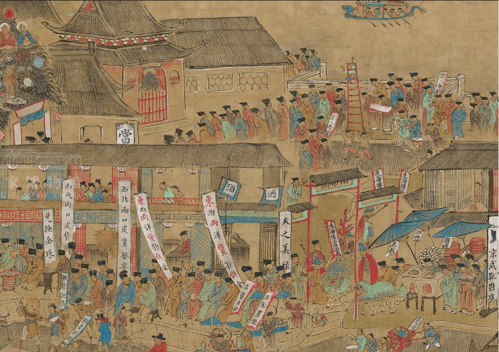 明 袁黄《功过格》样式 袁黄力图找到一种在慈悲捐款和道德价值间相均衡的体系。他的兑换率是每一千文铜钱的慈悲捐献相当于一分的功德。 固然袁黄坚持说钱并不是积聚功德所必须的东西,但他的体系使得有钱人取得功德容易得多。 明代后期的许多士绅正在使这种可能变成理想。他们捐献大量的、有时是数百两的银子建造或重修佛教寺院(包含铜钟和铜像)和其他公用设备,或是用于它种慈悲项目。正是明朝后期的寺院施主们培育了大量的闲置贵金属,其中有些佛像十分之大,如 1602 年为浙江一寺院铸造的一口钟,耗用纯铜两千三百斤、锡四百多斤,共运用金属一千六百公斤。 烧香、游玩 杭州的春天,西湖湖畔的寺院举行庙会,从农历二月中旬不时到五月初。 杭州的女人们这时都来到寺院烧香、游玩、寄宿僧舍。这时还是北方人长途南下到浙江沿海的佛教圣地普陀岛进香的时节。江南的佛教律宗的中心大昭庆律寺,成了出卖古玩和留念品的大市场。成千上万的都市人穿越其中,选购废物,沐浴阳光。