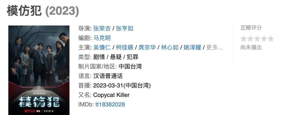 来自台湾的剧版《模仿犯》,这个阵容也是能够的。看主要演员,都是很熟习的演员,觉得能够等候。