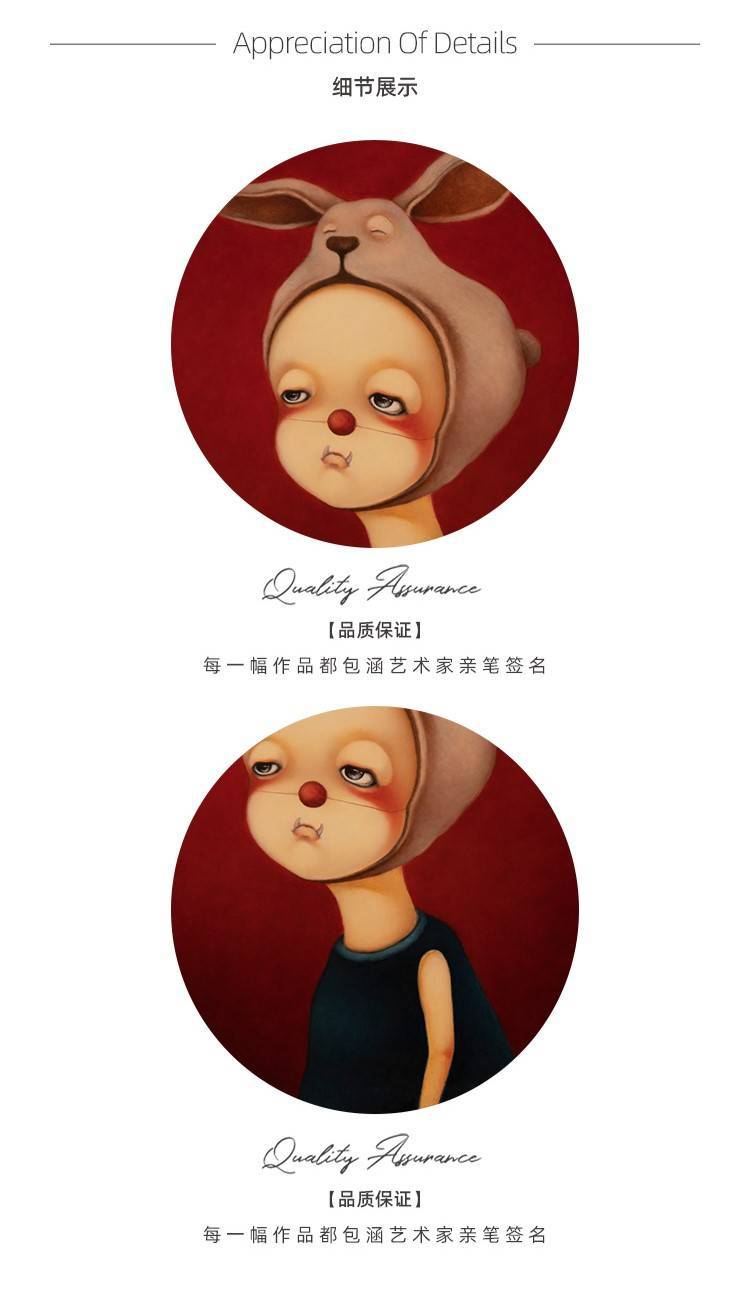 张静作品《蝴蝶结你很美,只是不会飞》 “在创作与其他艺术家撞车后,我画的画没法卖,生活很艰难,没措施,就得改动自己的创作作风。在那个时分,我偶尔间捡了只小黑狗,给它取名字叫墩墩,然后也是无聊,就把墩墩改来改去,就改成往常的丢丢了。第一次画丢丢的时分我一次就起了4张稿,那4张框子是淘回来的,是他人做坏的尺寸,很低价,我就想着就把它画了吧。画的时分我就觉那种释放、那种随心所欲和表白想要表白的东西全在里面了,就觉得我可能就是必须画这个东西吧。这时创作特别投入,就是那种恨不得把自己炸成烟花给你看。”——张静