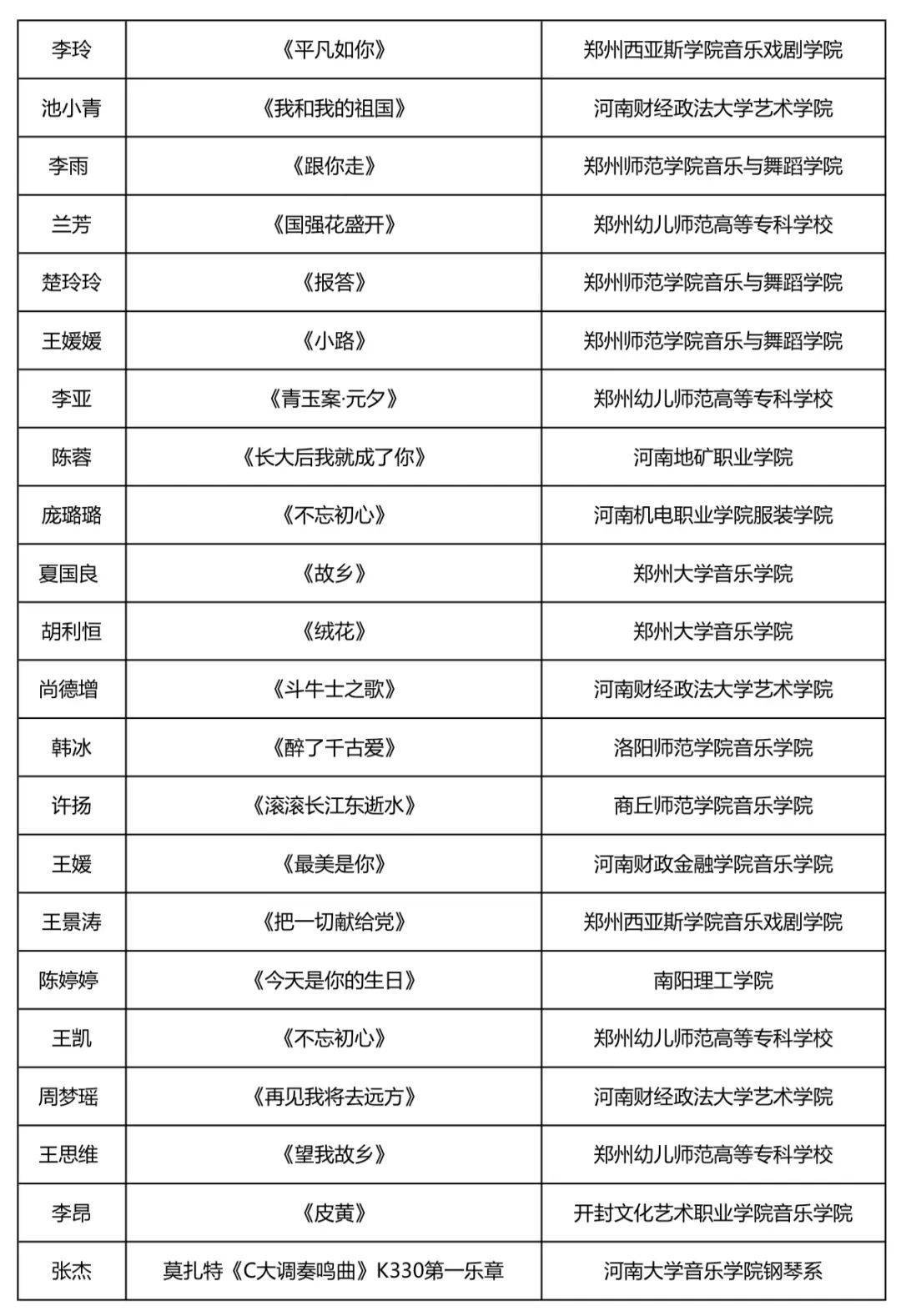 节目称号:《平凡如你》 郑州西亚斯学院音乐戏剧学院 中国音乐家协会会员 河南省音乐家协会会员 由自己作曲并演唱的《迷神引·一叶扁舟轻帆卷》荣获郑州市第二十七届肉体文化树立“五个一工程奖” 赴波兰参与2019中欧国际文化艺术节荣获利平斯基(Lipinski)国际声乐大赛教员组一等奖 赴香港参与由香港国际音乐家协会主办的“香港国际声乐公开赛”艺术歌曲公开组(民族唱法)一等奖、专题组一等奖 赴美国参与“美国施坦尼劳斯国际声乐竞赛”荣获“歌剧组第一名” 池小青