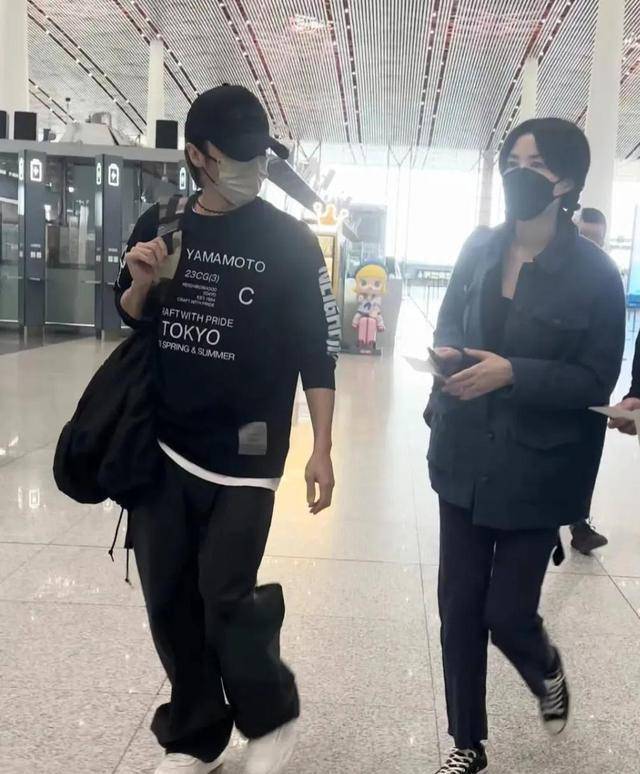 相比之下,谢霆锋的穿搭就愈加复古了。谢霆锋身穿黑色字母卫衣,搭配宽松的黑色裤子,颇具复古气息。 谢霆锋王菲就这样牵着手直接走在机场,引来不少人的围观。