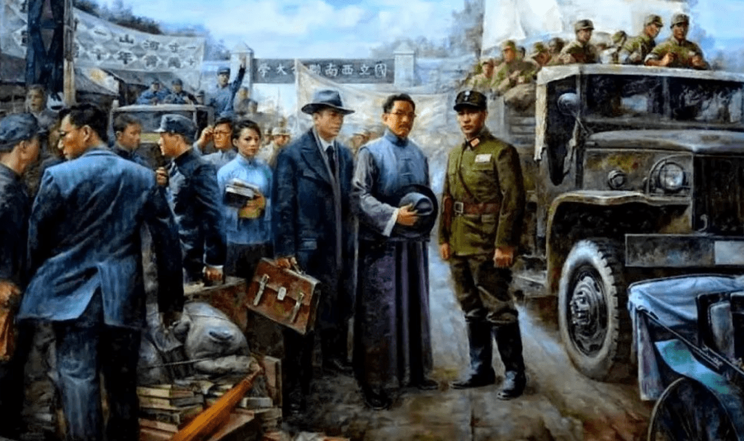 ▲ 西迁路上的盘山路 01 西南联巨匠生在“长征”路上 历史学家陈寅恪先生的父亲,是著名的爱国诗人陈三立。 日军打进北平后,陈三立绝食而亡。陈寅恪正忙着为父亲办丧事,日本宪兵队却送来了请柬,约请陈寅恪到宪兵司令部做客。于是,父亲丧事还没有办完,陈寅恪就含着悲愤悄然分开了北平,汇集到“联大长征”的南迁队伍之中。 学者闻一多拿着几本书,带着孩子就参与了长征。当时,日自己公开承诺:“留下来教学,照样保障丰厚年金。”作为教授,闻一多能够有保姆、有厨师、有车夫,还可配两个文书,生活温馨又面子,但他只“呸”了一声就拂袖而去。 物理学家赵忠尧,为把50毫克镭带到昆明,冒着杀头风险,化装成难民,“天涯孤旅,千里走单骑。”把装镭的铅筒,贴身紧抱在怀里,坐火车时,数天数夜不敢合眼。 抵达昆明时,胸膛已烙上两道血印,但赵忠尧却为此雀跃不已,由于他顾全了中国高能物理的全部家当。