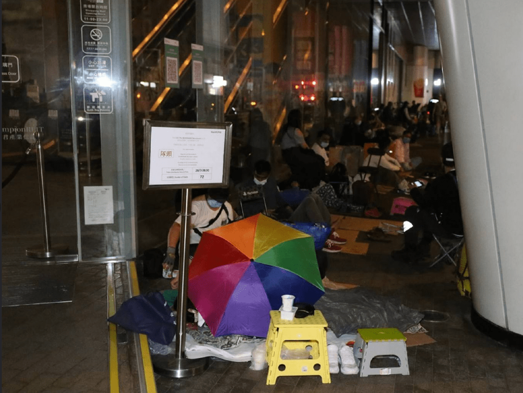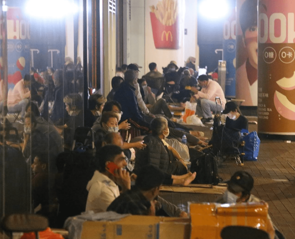 从现场的照片能够看出来,排队的人群里面,简直触及香港各个年龄层次:从青丝苍苍的老太婆到结伴而来的情侣,还有脑满肠肥的中年人。