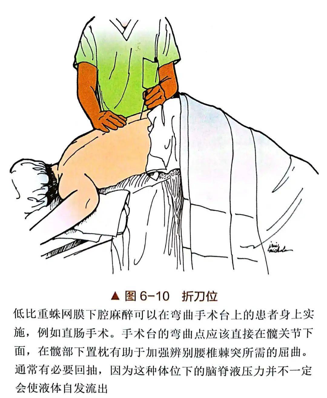 不幸的是,研讨曾经证明,最初局限于腰骶部皮区的重比重蛛网膜下腔麻醉最终会散布到的胸段最高平面与患者被立刻放置在仰卧位时所能抵达的平面高度相当。 b.患者侧卧位(取决于手术侧)状况下注入重比重溶液并维持该体位10~15min不时被倡导,以取得“单侧蛛网膜下腔麻醉”并减少低血压的发作率。这种战略的主要不利之处在于降低了手术室的效率,由于患者必须在脊髓阻滞后15min内坚持侧卧位。 ②低比重蛛网膜下腔麻醉:有市售的无菌蒸馏水稀释的低比重局麻药溶液。例如,用无菌注射用水将2%利多卡因稀释成0.5%的利多卡因,或将0.5%布比卡因稀释成0.35%的布比卡因,能够提供“临床低比重”蛛网膜下腔麻醉。低比重蛛网膜下腔麻醉最合适俯卧折刀位的会阴和直肠外科手术(图6-10)缘由有两个:
