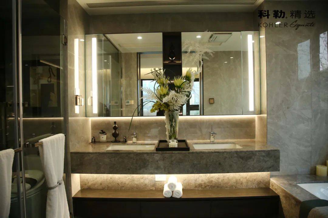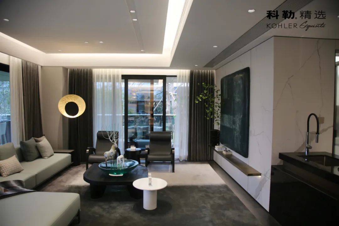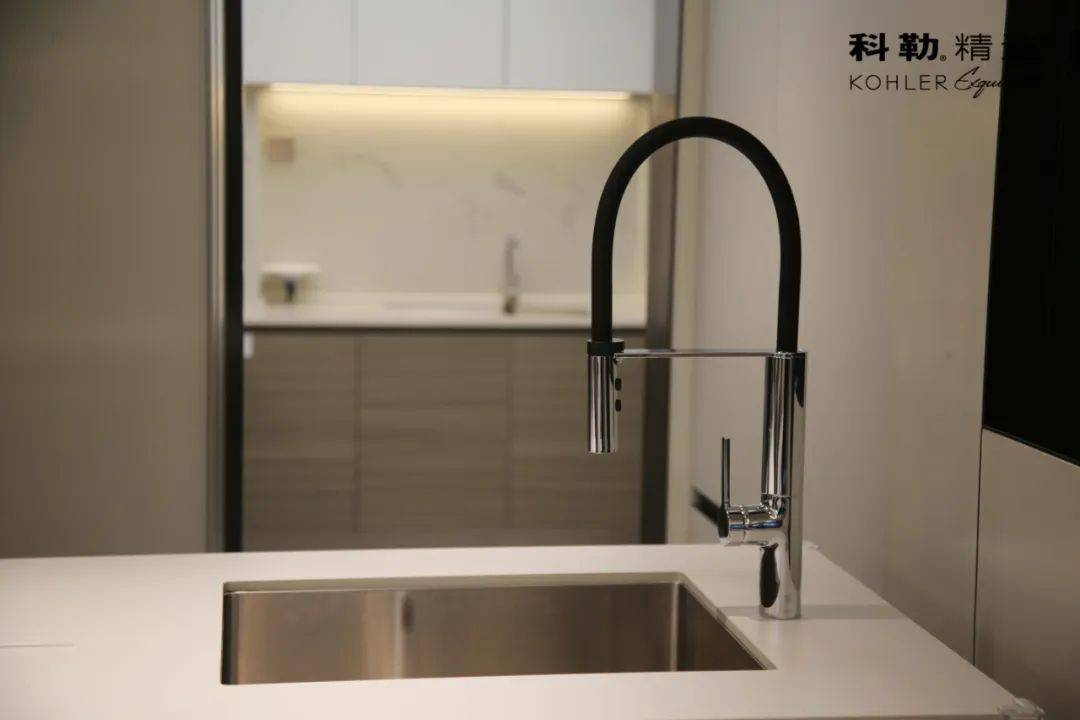 成都天府国际金融中心·双塔集奢华酒店、酒店式公寓、办公楼、大型商 业及奢宅于一体,是成都的地标性建筑,也是西部地域范围最大、 级别最高的城市高端综合体之一,为都市精英打造理想生活之颠。 在寓居空间的设计上,设计师以通透开放的格局和极简的设计言语,分离米颜色的巧妙运用,营造出内敛且层次丰厚的空间气质,诠释温馨有度的现代生活方式。兼具现代美学和适用功用的科勒系列产品,在现代生活空间中表演着不可或缺的角色。MALLECO 玛亚科下抽拉式厨房龙头的线条现代简约,其“水帘式”花洒设计, 带来细密水流,搭配 PROLOGUE 普罗双槽台上 / 台下双用厨盆, 是开放式厨房的绝佳之选。
