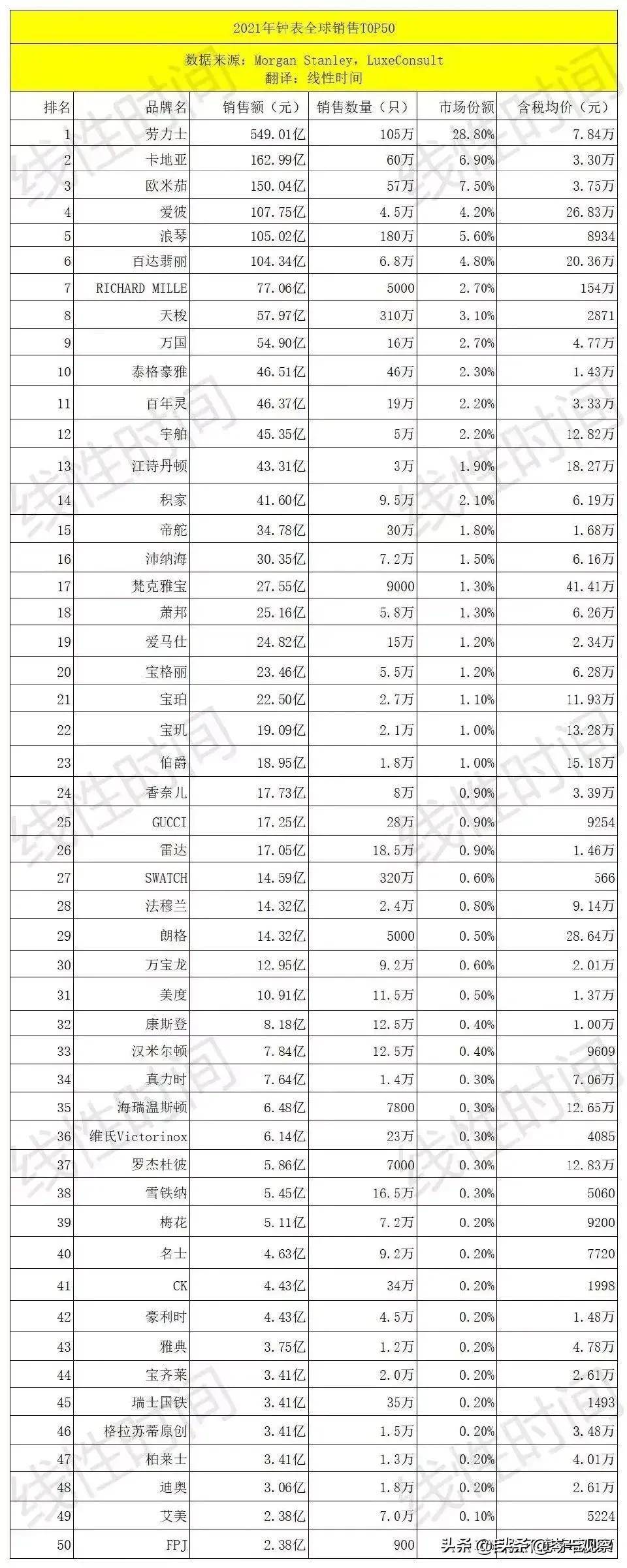 2021年全球手表销售数据出炉,我们来看看几组数据对比: 销售数量之王: