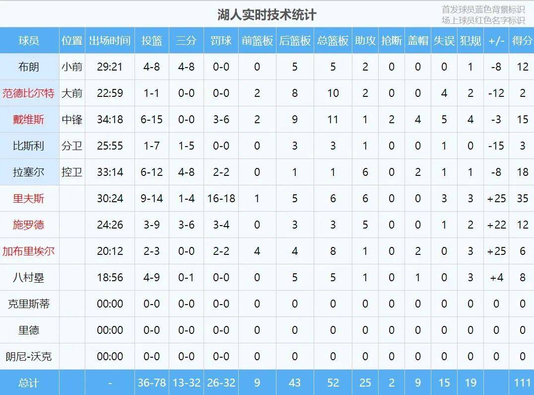落选秀里夫斯,成了湖人本场救世主!即便拿整个赛季的表示来看,他也值4年5000万美圆!最后来看看球员数据,说说你的感受: