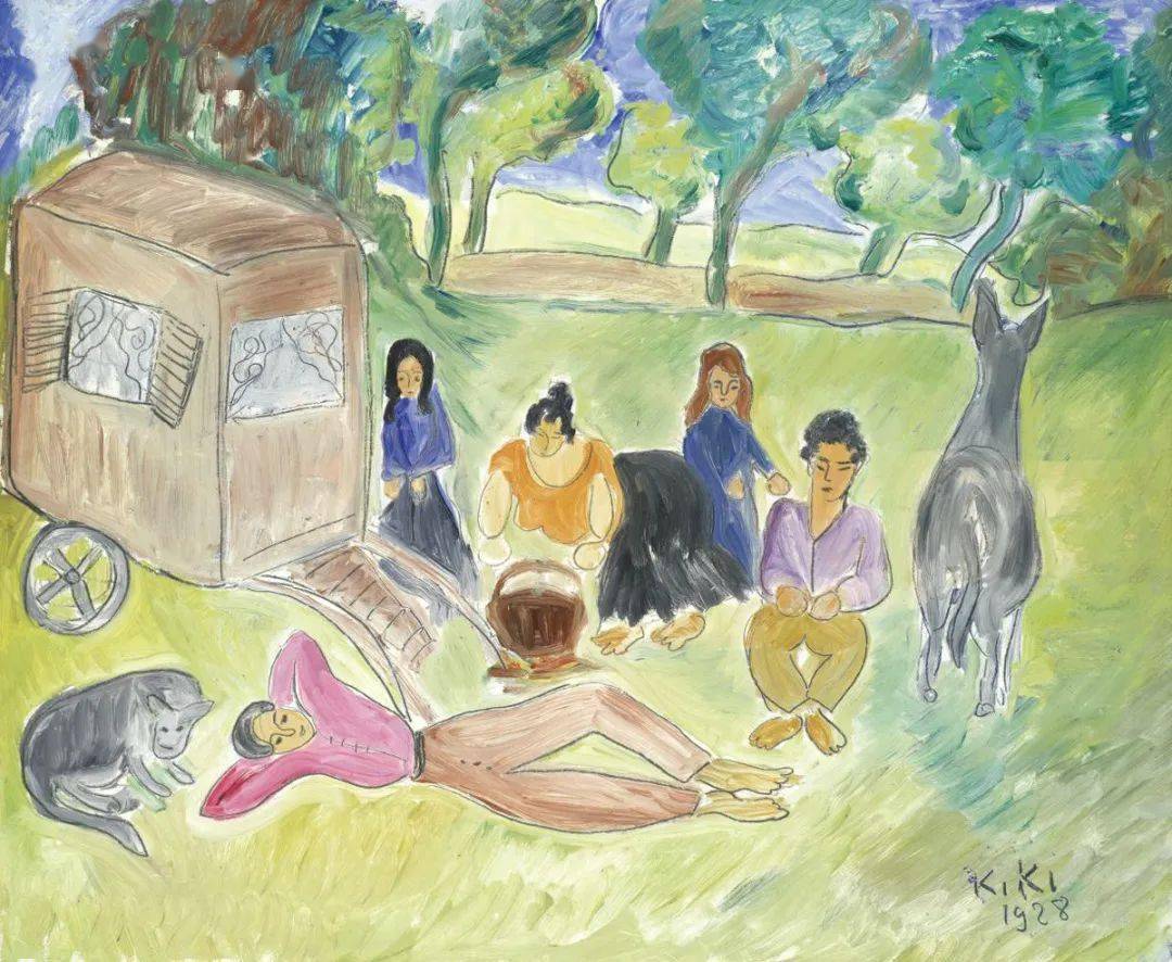 《吉卜赛人》 蒙巴纳斯的吉吉 1928年 狂妄,崇高的狂妄 1936年初,诗人保罗·艾吕雅在巴黎双叟咖啡馆引见同为自己朋友的毕加索与朵拉·玛尔(Dora Maar,1907-1997)相识。毕加索看到朵拉在桌子上不停地用一把尖尖的小刀在自己的手指间交叉,一不当心就有一滴血染红她黑色手套上的玫瑰花。她的小刀、手指和手套紧紧抓住了毕加索的心。 两人确立了情人关系之后,朵拉作为毕加索灵感缪斯的人生旅程就此开端,全新的毕加索也就此降生。他经过察看朵拉的表情和姿势,将她的面部在画布上解构重组,分离富有诗意的幻想,一件又一件以朵拉为原型的艺术作品降生了。一开端,画中的她有着明丽的笑容,但是随着时间的推移、恋情的消逝、毕加索的家暴以及与其他情人剪不时理还乱的关系,朵拉在画作中的形象变为了哭泣的女人——在《哭泣的女人》中,毕加索采用了具有激烈视觉抵触的颜色,让观者感遭到哭泣的女人内心的抵触与挣扎。 在缪斯和情人位置被弗朗索瓦丝·吉洛取代后,朵拉阅历了肉体解体,但并未中止创作。“我固然狂妄,但这并不障碍我妒忌。我们所分享的东西在世界上是无独有偶的,我历来不把往常的毕加索与认识我之前的毕加索相比,也不与在我之后的毕加索相比……狂妄,崇高的狂妄。我并不请求上帝只爱我一人,只需我对他的爱是无独有偶的,我就满足了。”朵拉·玛尔曾这样说。 毕加索的7个爱人中,一个病死、两个自杀、一个肉体失常、一个为他出轨。每段恋情的土崩瓦解都带给他新一次画风的改动:从自然主义到表示主义,从古典主义到浪漫主义,从浪漫主义回到理想主义……女人对他来说既是缪斯又是生活必须品。 以前提及朵拉·玛尔,人们总会想到她是毕加索的情人与缪斯,却不知她也是一位超理想主义画家及摄影师。《泳装模特》作品中,她将比基尼模特的形象和波光粼粼的泳池堆叠。此外,还实验极具超理想艺术颜色的照片拼贴,具有当时新潮的思想和共同的发明性。同时,她还创作了大量反映理想生活穷困、迷茫、灾难的街景、人像等摄影作品。近年,她的才气逐步被世人所见,2019年巴黎蓬皮杜艺术中心与伦敦泰特美术馆都举行了她的艺术展。