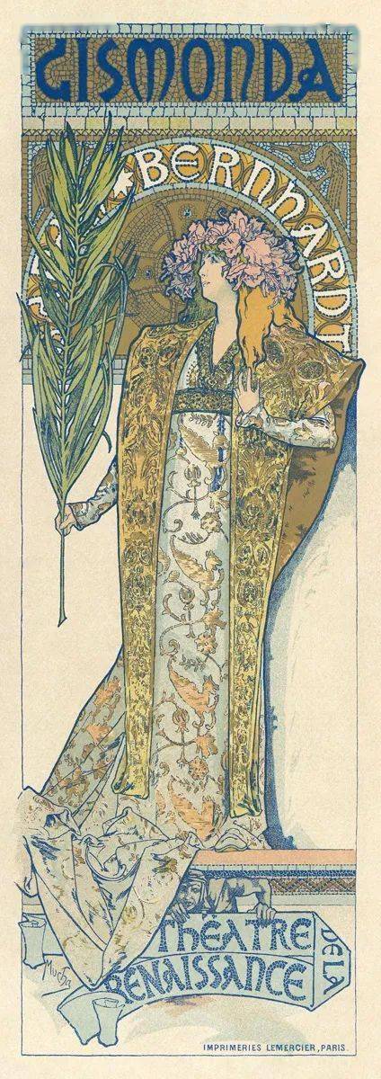 穆夏为莎拉出演的歌舞剧《吉斯蒙达》设计海报,自此名声大噪。