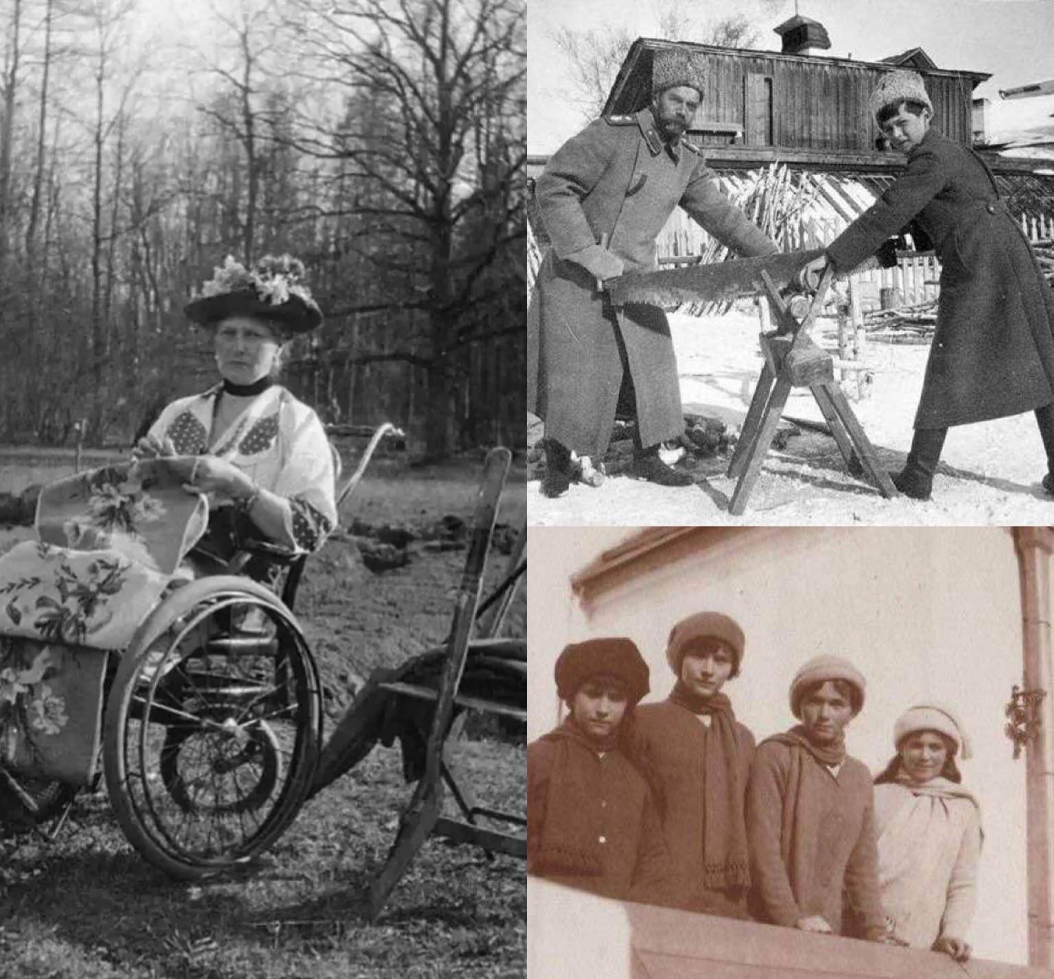 尼二和乔五 尼二一家被克伦斯基的暂时政府囚禁在托博尔斯克,那时他们还不时抱着生的希望。 尼二和孩子们一同劳作,亚历山德拉心情阴霾、急剧衰老,但也会坐着轮椅到户外绣花。