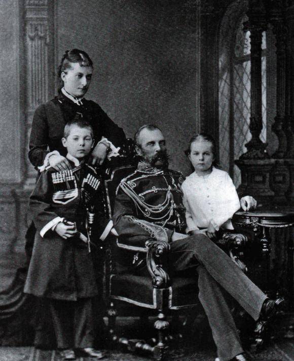长子尼古拉、三子乔治、四子迈克尔 玛丽亚成为皇后后,她的人生开端下滑。 亚二的被刺给亚三带来庞大的心理阴影,他开端增强君主专制,遏制社会自由化,但民意党人的活动有增无减。