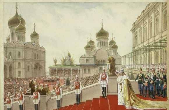 1896年5月18日,沙皇夫妇加冕。 当天呈现了许多不祥征兆:镶满钻石的繁重的圣安德烈勋章银链从沙皇的肩膀上滑落在地;重达4公斤的帝国皇冠卡在尼古拉5年前被日自己砍伤的旧伤口上,让他疼痛不已。