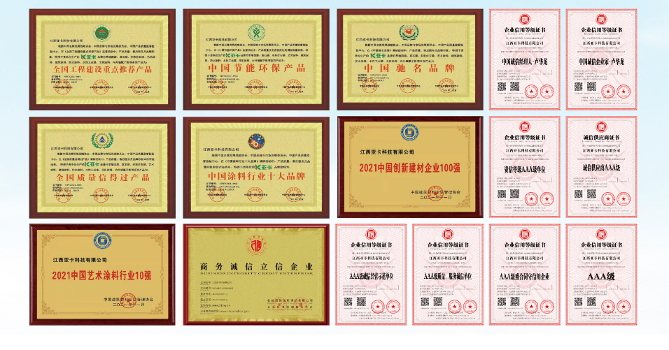涂联集团从原资料消费到管理,均严厉把关。经过自身的不时努力,先后荣获全国工程树立重点引荐产品、中国节能环保产品、中国着名品牌、中国涂料行业十大品牌等十余项金 质荣誉并经过法国 A+认证、美国 FDA 检测等等。 6. 亚卡涂料,绿色环保 绿色环保型涂料替代传统涂料;是时期的展开趋向、不可逆转的大方向。亚卡涂料一直秉承“传承红色基因,展开绿色亚卡”的理念,持续坚持消费绿色建材产品为基础,创新构建“亚卡战略爆品群”、全力打造“明星产品”阵容“。