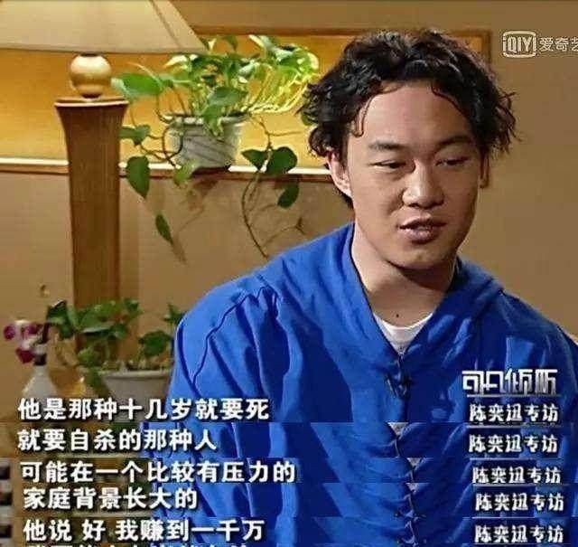 陈奕迅说谢霆锋不是一个十分达观的人,还透露说:谢霆锋在19岁的时分,就曾经有轻生的念头了。并且说假如自己赚到1000万就终了生命。