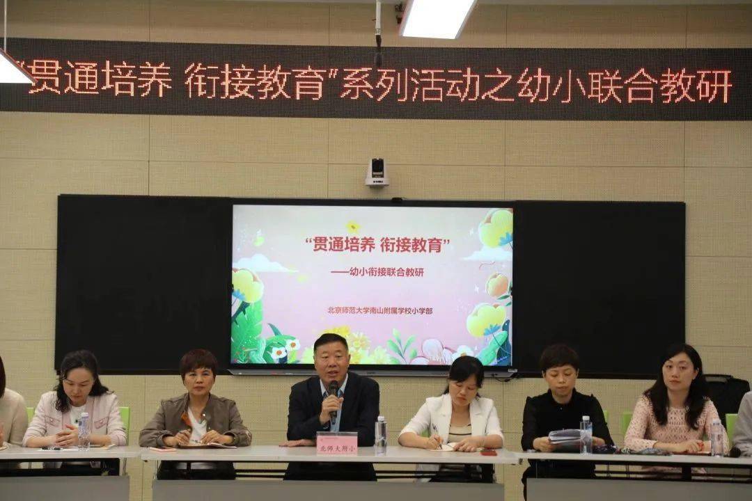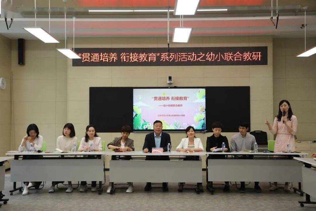 从幼儿园进入小学,是童年生活的自然持续和过渡,也是幼儿在其展开过程中所面临的一个严重的转机期。做好幼小科学衔接工作,对幼儿未来可持续展开乃至终身学习具有十分积极的意义。 为了积极推进幼儿园和小学科学有效衔接,树立科学导向,减缓衔接坡度,辅佐幼儿顺利完成从幼儿园到小学的过渡,继我校优秀教员入园开讲座之后,3月17日下午,北师大南山附校小学部与湛蓝海岸东区、南区幼儿园、育德佳园幼儿园、西海湾幼儿园、浪琴屿幼儿园以及知行世家幼儿园展开了“贯串培育 衔接教育”为主题的幼小衔接分离教研活动。参与此次分离教研活动的有我校的翟春城书记、曾伟红副校长、付雪春部长,杨艳副部长、张洁主任、陆海主任、低段教员代表和上述幼儿园的园长及部分幼儿园教员。本次活动由我校教学处张洁主任掌管。