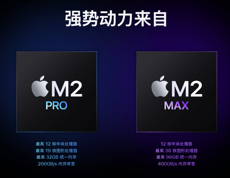 苹果发布新Macbook,搭载M2 Pro和M2 Max芯片 国际电子商情1月18日讯,当地时间周二(北京时间1月17日晚),苹果公司发布了其2023年首波新品,新产品为2023款MacBook Pro和Mac mini,搭载M2、M2 Pro和M2 Max芯片。 新品性能和特性 据了解,本次苹果公司共发布了两款新品——2023款MacBook Pro和Mac mini。 ·2023款MacBook Pro 在主芯片方面,M2 Pro和M2 Max进一步扩展了M2架构,盘绕高带宽统一内存打造出新一代中央处置器和图形处置器。除了强大的媒体处置引擎,这些Pro级芯片还配备更快的16核神经网络引擎以及与M2芯片相同的最新保险隔区。