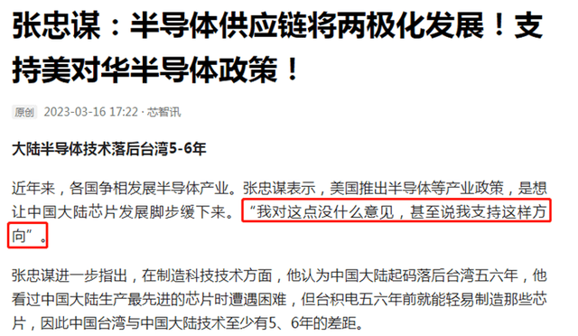 或许从那时分开端,张忠谋就彻底和美国站在了一同。果不其然,张忠谋又发表了一次力挺美国,“反水”中国半导体的行动。 台湾省媒体《天下》杂志举行了一次半导体论坛,张忠谋受邀参与,论坛上张忠谋表示对美国推出半导体等产业政策没什么意见,以至说我支持这样的方向。