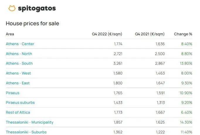 2022年,希腊全国范围的房价上涨幅度约为8%。和2021年第四季度相比,雅典各个区域的涨幅不尽相同: