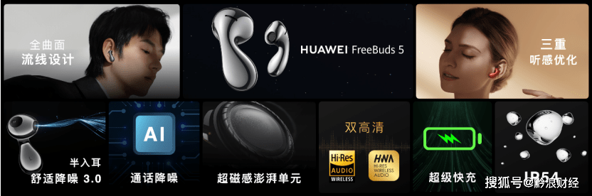 新一代半入耳旗舰华为FreeBuds 5 正式发布 2023年3月23日,华为春季旗舰新品发布会上,华为正式发布半入耳TWS耳机的旗舰新品华为FreeBuds 5,采用全新“水滴”外型,诠释美学新“声”。以推翻传统的全曲面流线设计1、全链路高解析音质、半开放温馨降噪和聪慧音频衔接,满足了用户从时兴设计、温馨佩戴、高质量倾听再到多设备无缝流转的需求,成为新代人温馨倾听的时兴音频伴侣。