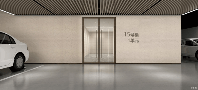 (西大门图) FUYANGTIANDI THE GARDEN 魅力厅堂 匠心品味 当你回家,走进单元门便是约3.3m层高酒店式入户大堂,采光通透,恢弘尊崇不论是谈生意还是闲谈喝茶都在向对方彰显你共同的品味,羡慕之情不盲目的从眼神中流露。每层电梯间公区墙面都铺设了瓷砖,提升了层次与质量;约30㎡公开精妆大堂直连停车场,为高效出行助力。公开车位地坪全部采用金刚砂骨料结晶耐磨地坪,经久耐用,比普通地坪漆更环保。