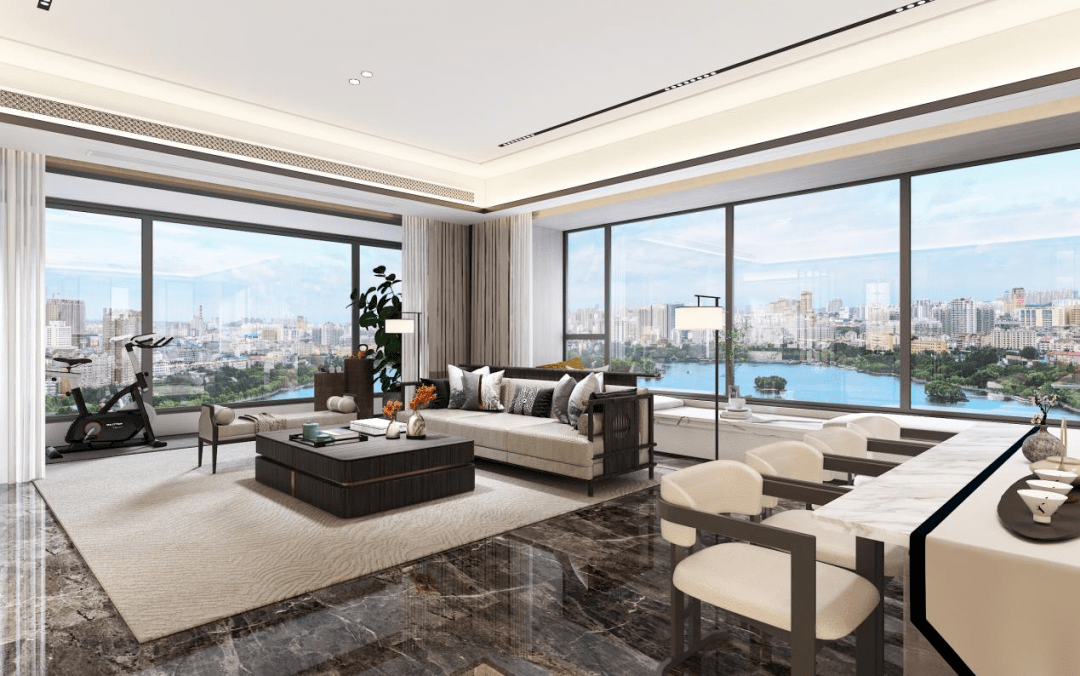 (168㎡平面图) 据了解,9号楼有近百米楼间距(9#与6#之间楼间距),使之成为小区楼栋之间的顶流尺度。不只延伸建筑之间的距离,提升了采光通风,更提升了景观视野,培育了远可观崂山,近可赏龙泉湖的美景。