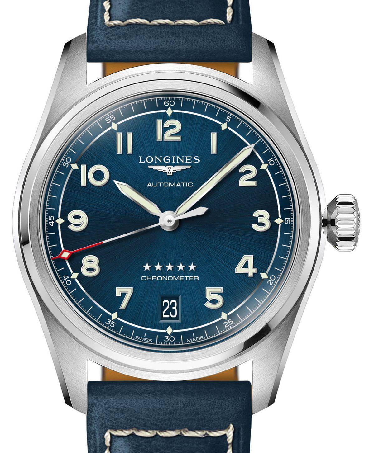 全新Spirit系列腕表有黑色、海军蓝和浅香槟金三种表盘选择。每种表盘都遵照了该系列专有的视觉公式设计。抛光尖头棒形指针,搭配覆有夜光涂料的阿拉伯数字时标,整体洁净利落。