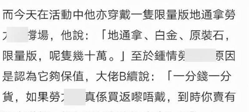 他还说自己喜欢珍藏名表,由于这其实也是一种保值投资。
