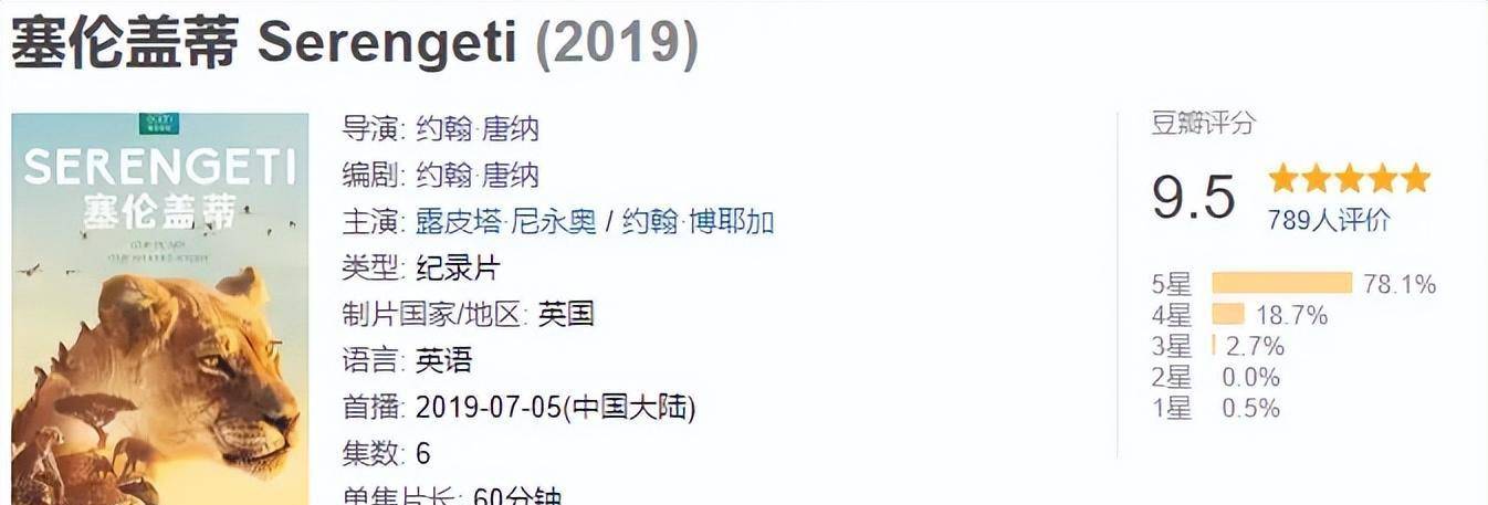 BBC纪录片《塞伦盖蒂》收官豆瓣9.5的高分。而这次的镜头拍摄的是生活在野生动物天堂非洲大草原“塞伦盖蒂”上的各种动物的故事。