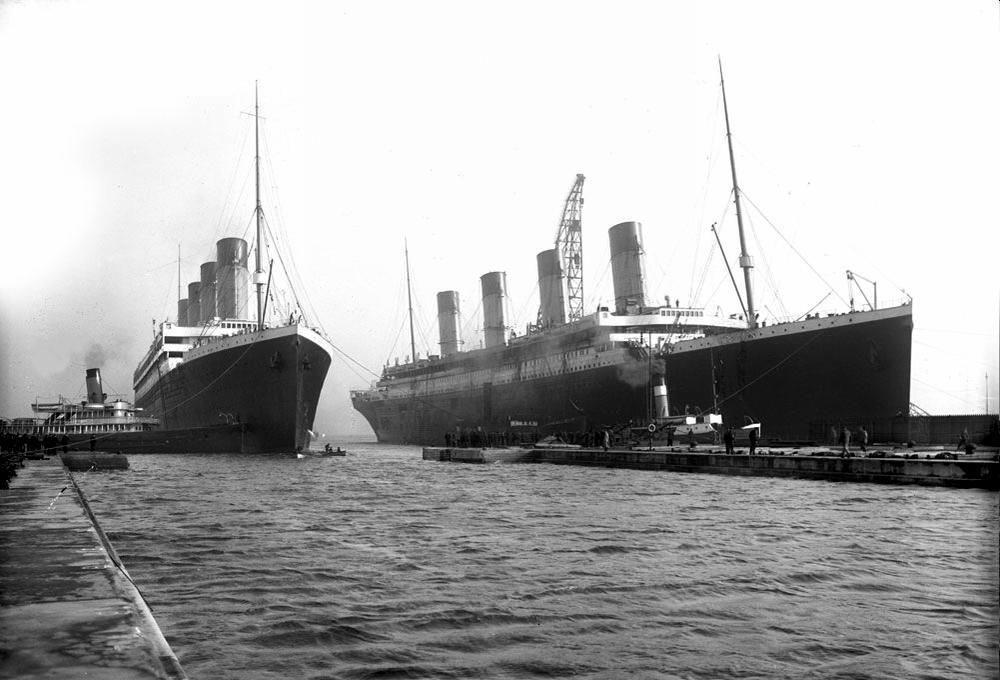 从左近的船上拍摄到的拖船将泰坦尼克号从南安普顿港拖出港的一刻 巨轮的降生源于竞争 从1871年起,北爱尔兰最大城市贝尔法斯特的哈兰德·沃尔夫造船厂(Harland & Wolff)就是白星航运公司(White Star Line)的协作同伴。 双方签署了具有排他性的协议:哈兰德·沃尔夫船厂将建造白星航运未来一切的船舶,并且不为任何白星航运的竞争对手建造船只;同样,白星航运将不向任何哈兰德·沃尔夫船厂的竞争对手下达造船的订单。 20世纪初,跨大西洋的客运贸易利润丰厚,竞争猛烈,船运公司争相运送富有的旅客和移民。1901年白星航运公司被美国财阀约翰·皮尔庞特·摩根(John Pierpont Morgan Sr.,朱利厄斯·皮尔庞特·摩根,即JP·摩根)的国际商业海运公司(International Mercantile Marine Co.,IMM)收购之后,他的目的是卡纳德航运公司(Cunard Line,又译作冠达)。而财政状况困顿的卡纳德公司则被迫向英国政府寻求辅佐。1907年,两艘绝后范围的快船——初次运用大型蒸汽轮机的卢西塔尼亚号(RMS Lusitania)和毛里塔尼亚号(RMS Mauretania)参与了卡纳德公司庞大的邮船队。在同名影片《泰坦尼克号》中收场,女主露丝就拿毛里塔尼亚号和泰坦尼克号对比。泰坦尼克号正是白星航运为了赶超卡纳德航运公司,而推出的奥林匹克级邮轮之一。白星公司在竞赛中被甩到了后面,有IMM做后台,白星航运公司决议踌躇不前。但是有戏剧性的是当泰坦尼克号海难事故发作之后,最先赶到现场救援的卡帕西亚号(RMS Carpathia)是卡纳德公司的。 白星公司的奥林匹克号邮轮的想象源于1908年的一天晚上,哈兰德·沃尔夫造船厂老板威廉·皮尔里(William James Pirrie)勋爵和白星航运公司主席约瑟夫·布鲁斯·伊斯梅(Joseph Bruce Ismay),在皮尔里位于伦敦贝尔格莱维亚区的大宅中共进晚餐。他们谈到了卡纳德公司的两艘新船——卢西塔尼亚号和毛里塔尼亚号。伊斯梅提出在哈兰德·沃尔夫造船厂建造两艘绝后范围的巨轮,每艘有三座烟囱,吨位要超出卡纳德公司两艘新船15000吨左右(卢西塔尼亚32000吨级)。伊斯梅端着一杯葡萄酒对皮尔里说,“给我造一艘连上好葡萄酒里的酒渣都不会被晃动的稳稳妥当的船。”随着两人在皮尔里的书房里喝得酒酣耳热,两艘船变成了三艘,三个烟囱变成了四个烟囱,这三艘史无前例的巨船,将成为无可争议的大西洋航线霸主,不光是在吨位上,而且也在速度和奢华水平上。新船将具有高度跨三层甲板的头号餐厅,以至三等舱的装潢也将远比其他的邮船要温馨高级。当然具有高达26至27节的航速的想象最后没完成。 哈兰德·沃尔夫造船厂关于新船的建造极为注重,他们组织了最顶尖的专家参与设计:设计部门经理小托马斯·安德鲁(Thomas Andrews Jr.)担任总体设计,安德鲁的副手爱德华·怀尔丁(Edward Wilding)担任计算数据和船舶稳定性、均衡性设计;总经理兼首席设计师亚历山大·卡利斯勒(Alexander Carlisle)担任舾装、装潢设计与总体规划——泰坦尼克号救生艇的规划便是出自他之手;威廉·皮尔里(William Pirrie)对设计过程亲身监视。白星航运公司主席布鲁斯·伊斯梅也在设计过程中提供了很多意见。为了使头号舱更为奢华,降低了船身中段的隔水板高度。这跟泰坦尼克最终的漂浮脱不了干系。