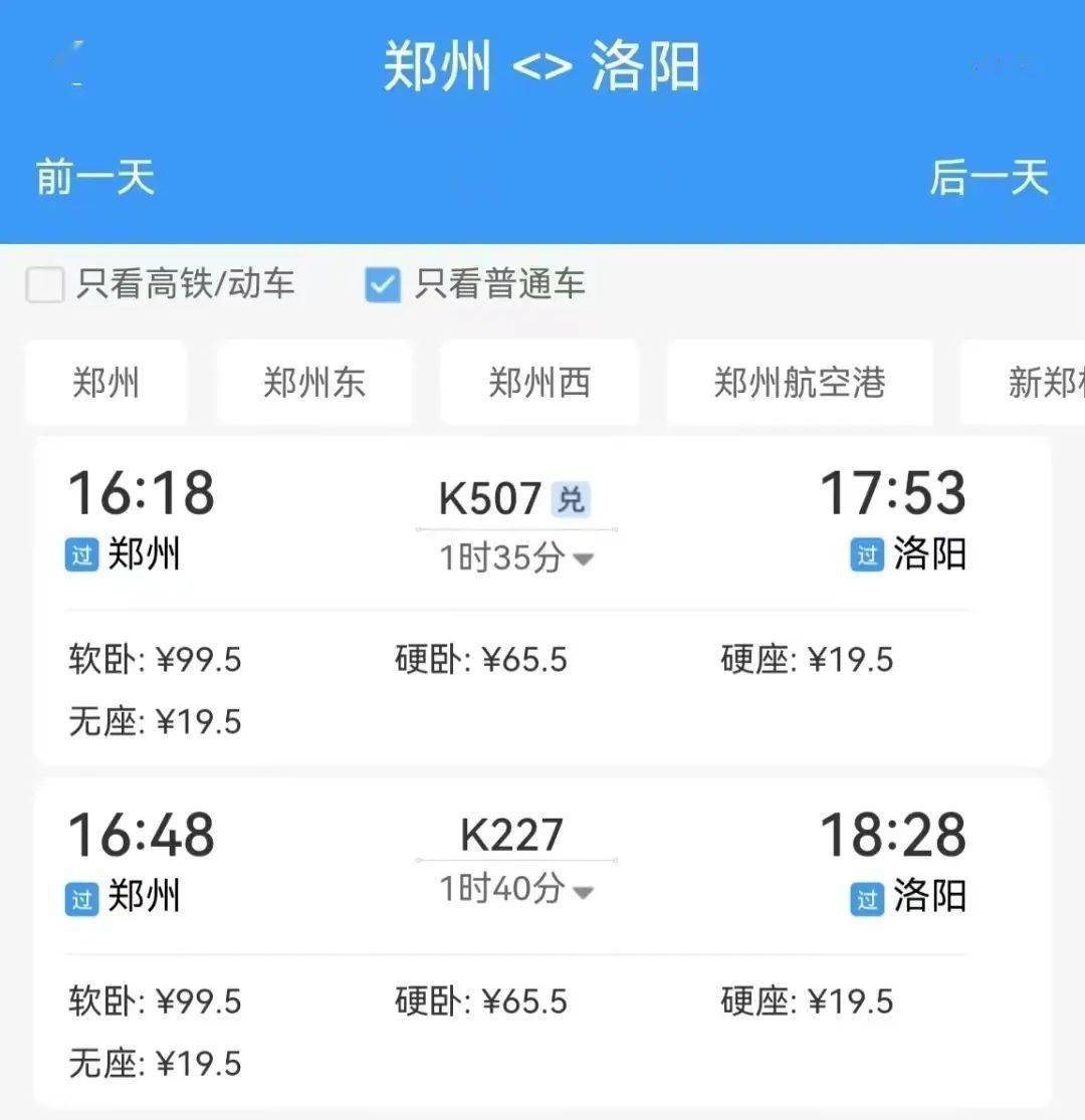 图源:铁路12306APP # 出游攻略 # 引荐景点:八里沟景区、万仙山景区、宝泉旅游度假区…… 引荐美食:红焖羊肉、原阳凉粉、原阳烩面...... 郑州洛阳 洛阳合适游玩打卡的中央可不少,隋唐洛阳城国度遗址公园、龙门石窟、白马寺、世界地质公园黛眉山、鸡冠洞、重渡沟等等。不论你是想瞻仰古迹,还是希望畅游山间,来洛阳就够了。