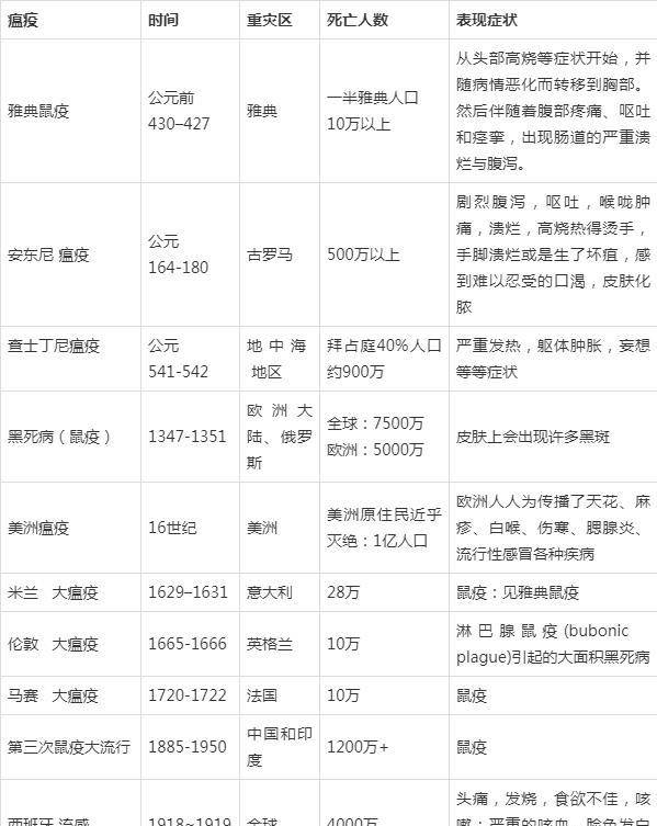 历史上,人类曾经发作了十次十分恐惧的瘟疫,如下图: